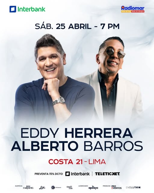 La elegancia del merengue y el poder arrollador de la salsa se encontrarán en un mismo escenario para regalarle a Lima una velada inolvidable. Dos referentes indiscutibles de la música latina, Eddy Herrera y Alberto Barros, unirán fuerzas este 25 de abril en Costa 21, en un espectáculo que promete convertirse en uno de los conciertos más memorables del año.