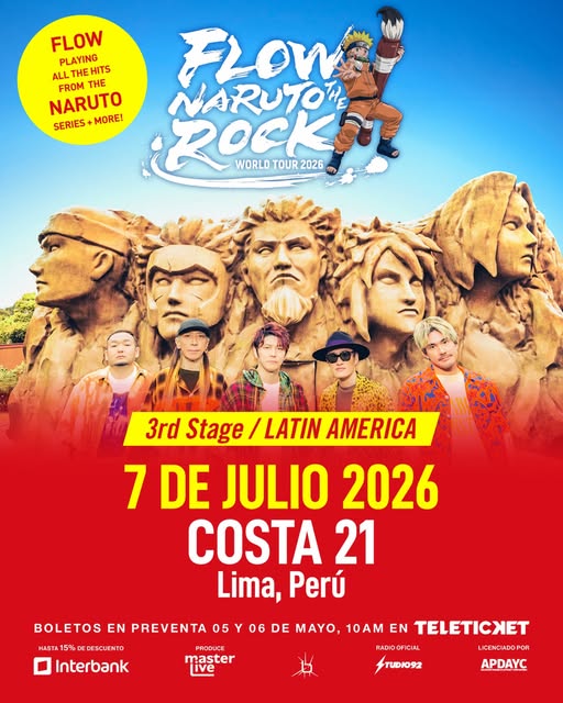 Los fanáticos del anime y el J-Rock en Perú tienen una cita imperdible este 2026. La legendaria banda japonesa Flow, reconocida mundialmente por interpretar algunos de los temas más icónicos de la franquicia Naruto, llegará a Lima como parte de su esperada gira “Naruto The Rock World Tour 2026”.