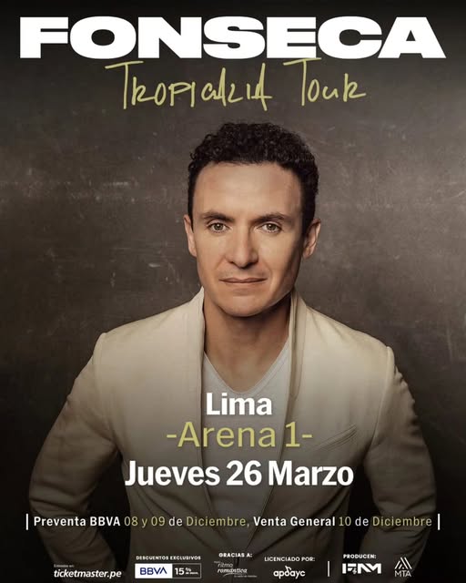 El 26 de marzo, la ciudad se llenará del inconfundible ritmo que caracteriza a uno de los artistas más queridos de la música tropical-pop. Con una trayectoria que combina trayectoria, romanticismo y un sonido que invita al baile desde la primera nota, Fonseca está listo para reencontrarse con su público peruano en un espectáculo que celebrará su carrera, sus hits y, por supuesto, la pasión que lo ha convertido en referente internacional.
