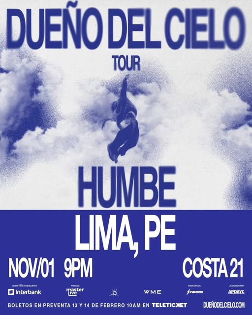 Una sola noche, un solo show y una experiencia que promete quedarse en la memoria de todos los que asistan. Humbe ya está en camino, y Perú está listo para recibir al Dueño del Cielo. ☁️