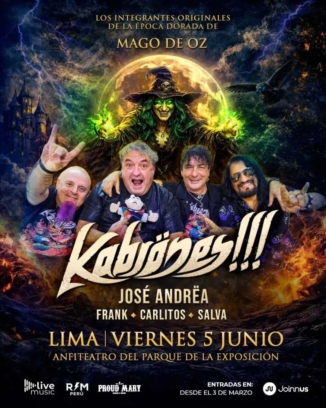 La leyenda del folk metal en español regresa al Perú con un espectáculo que promete quedar en la memoria de todos los fans. KABRONES (ex Mägo de Oz) aterriza en Lima este viernes 5 de junio de 2026 para ofrecer un show épico en el Anfiteatro del Parque de la Exposición, reuniendo a los integrantes originales de la época dorada de Mägo de Oz 🧙♀️🌙⚡