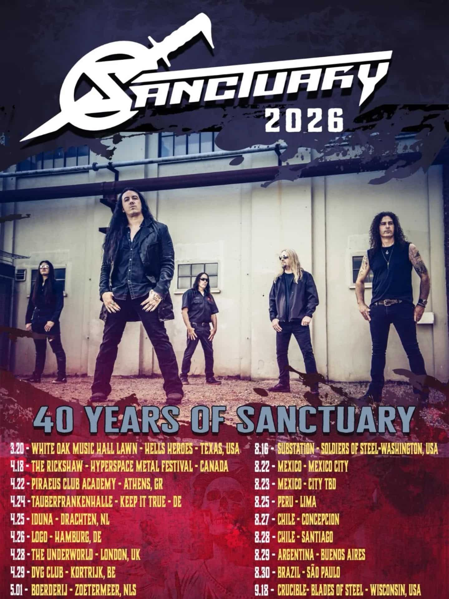El tour “40 Years of Sanctuary” comenzará el 20 de marzo en Texas, Estados Unidos, dentro del festival Hells Heroes. En abril, la banda viajará a Canadá para el Hyperspace Metal Festival y luego iniciará una serie de conciertos en Europa.