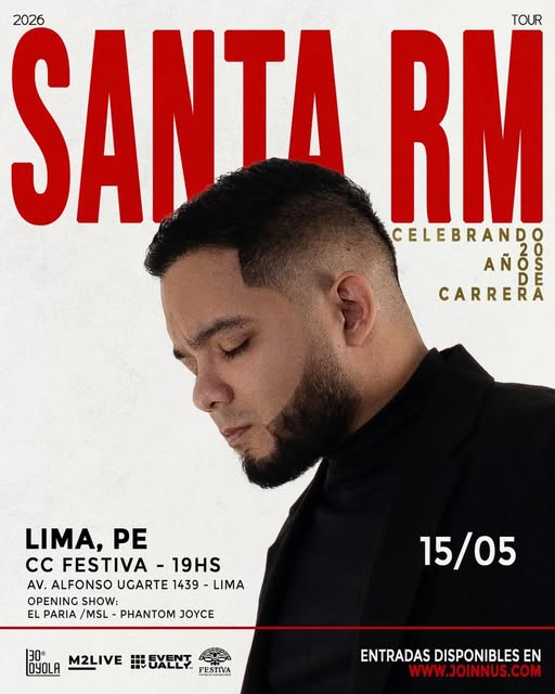 Desde México, Santa RM aterriza en la capital peruana como parte de su gira, consolidando su impacto en la región y reafirmando su lugar como una de las voces más sólidas del rap contemporáneo en español. Su estilo, caracterizado por letras profundas, storytelling emocional y una fuerte identidad urbana, ha conquistado a miles de seguidores a lo largo del continente.